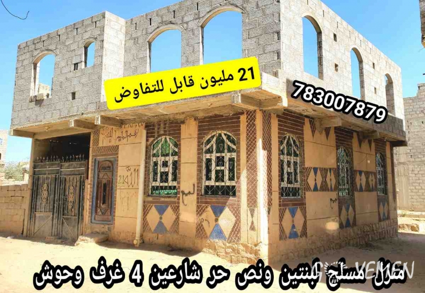 منزل مسلح عمدان لبنتين ونص حر شارعين 4 غرف واسعه وحوش تشطيب سيراميك ب 21 مليون قابل للتفاوض